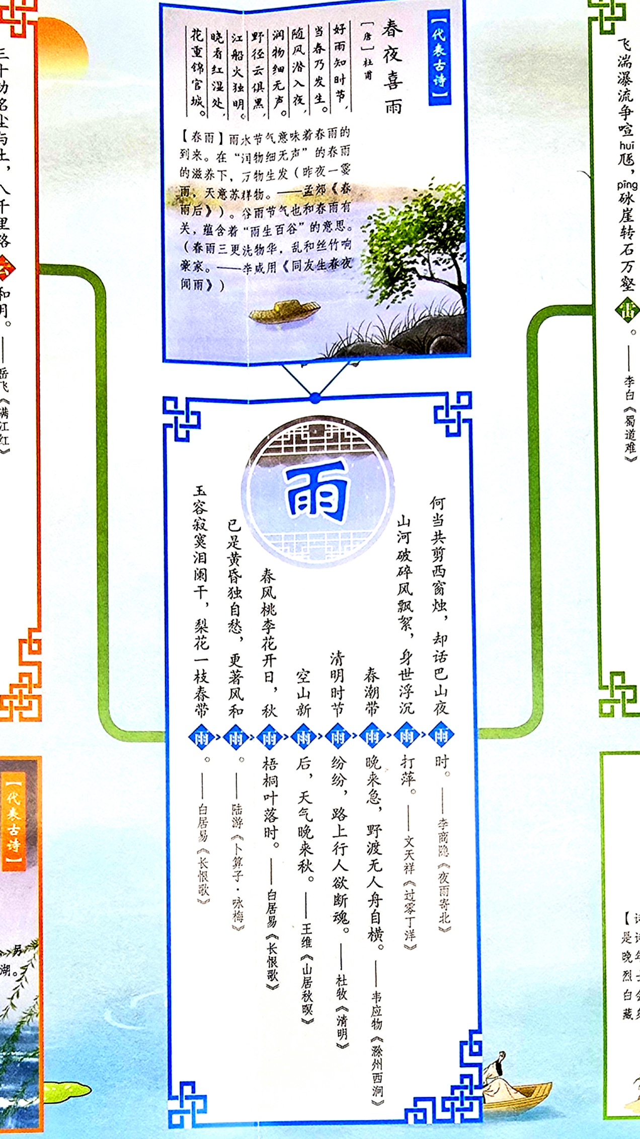 写给孩子们的春花秋月 抚琴居 今天 9 默认 摘要: ... 标签: 春花 秋月 风雨 桃红 柳绿 竹菊 梅兰 江河 湖海 飞花令 日月 星辰 海报 阅读 QQ 分享 微博分享 微信分享 分享 上一篇诗文作品屋内不打伞,雨夜不留人 下一篇诗文作品对孩子托举的六层逻辑 屋内不打伞,雨夜不留人上一篇诗文作品 对孩子托举的六层逻辑下一篇诗文作品 相关诗文 春花秋月风雨桃红柳绿竹菊梅兰江河湖海飞花令日月星辰 当白话遇上古诗文(一) 2025-03-17 暴风雨是一个筛子 2024-01-04 惊艳了整个网络的古诗新作 2023-12-25 《瓦尔登湖》哲理语录(九) 2023-12-19 句句都是我爱你 2023-12-19 无人与我立黄昏 2023-12-19 唐诗宋词到底谁更豪放? 2023-12-19 我与春风皆过客,你携秋水揽星河 2023-04-15